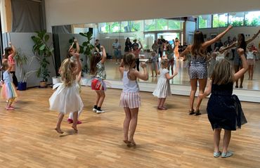 Der Rest der Stunde wird eine Choreografie erarbeitet, die über 3-4 Wochen erlernt wird. Zum Ende des Monats kann somit jedes Kind dann einen Tanz auf ein ganzes Lied tanzen. Liedwünsche werden gerne auch berücksichtigt.